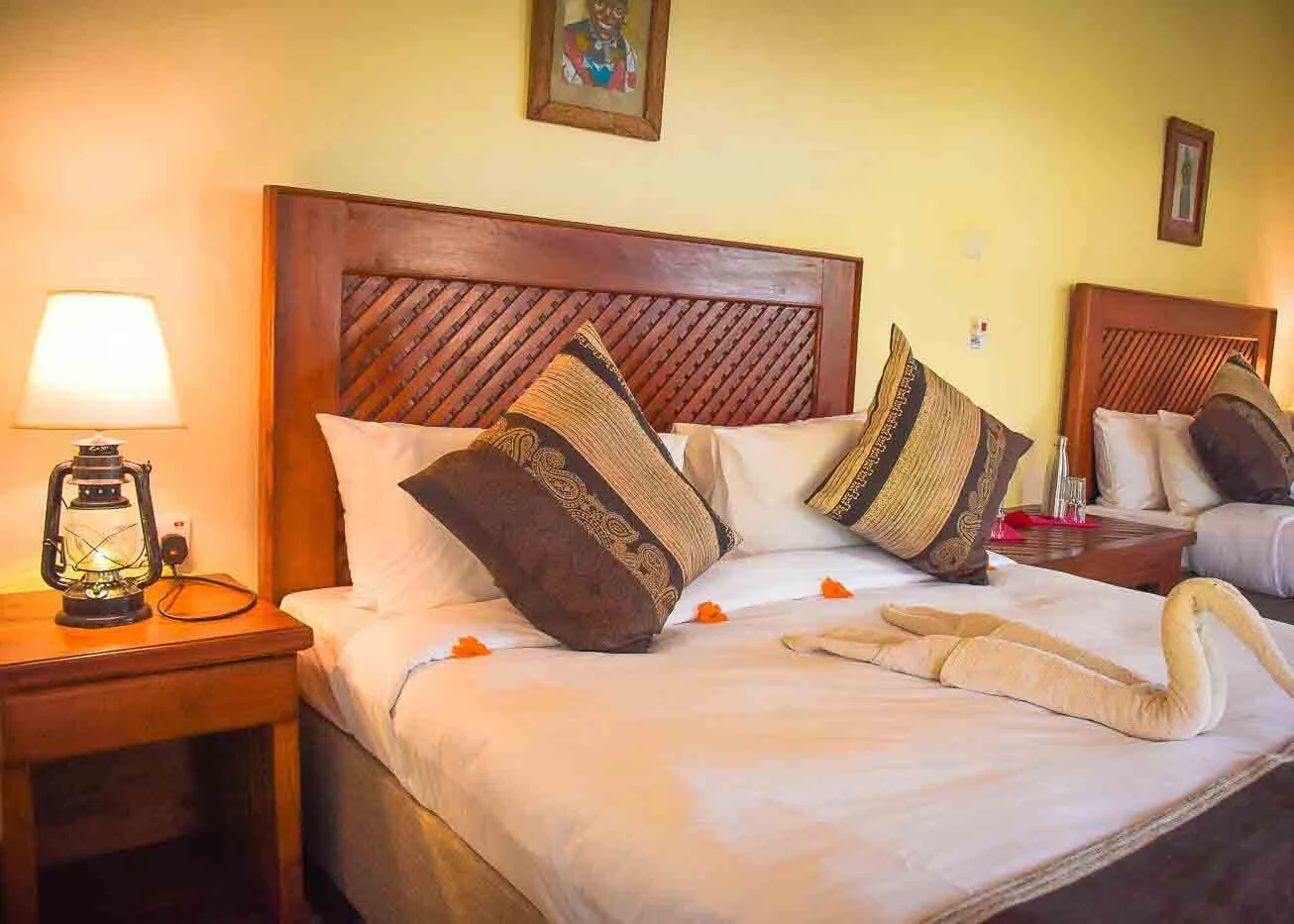 Today begins with an early rise for a sunrise safari, offering the chance to witness wildlife at its most active and to marvel at the spectacular African savannah sunrise. After the safari, brunch awaits back at camp. In the afternoon, you'll journey to Ngorongoro, acclaimed as the 8th Natural Wonder of the World. This vast crater, with its towering 2,000-foot walls and expansive floor spanning 102 square miles, serves as a sanctuary for a diverse array of East African wildlife, including the elusive black rhinoceros. Known for its unparalleled wildlife density, the crater boasts a remarkable concentration of animal species, including a picturesque river, swamps, a soda lake adorned with flamingoes, lush forests, and vast plains. Notably, the resident bull elephants here boast impressive tusks, a testament to the nutrient-rich volcanic soil and grasslands. Rhino lodge Ngorongoro